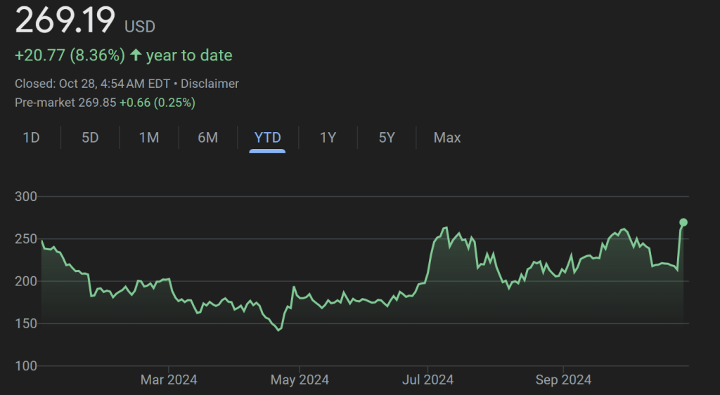 上周最令人惊异的,莫过于特斯拉的财报。财报发布后,特斯拉股价单日内最高上涨21%,股价破$260,收复年内全部跌幅;周五,在早盘短暂的“止盈”回撤后,TSLA又继续上涨,最终杀期权微收在270下方,全天收涨3.3%。截至本文写作时,TSLA在24小时夜盘中成交在$271附近,创下该公司13个月新高。
