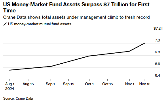 国债收益率继续上升,意味着SPY回报将落后于国债,大盘也会因此回调。美国货币基金总量于周三创下7万亿的历史记录,这表明已有更多资金转而买入基金吃国债利息。这就是国债贬值、收益率上升反而会让美股承压的逻辑。
