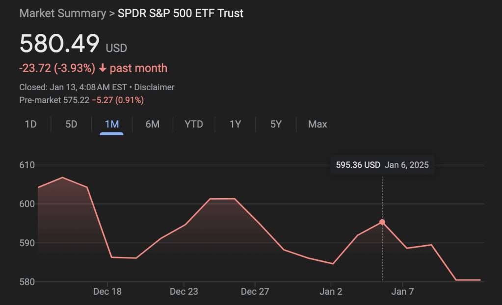 大家好,今天是2025年1月12日星期日周末。今天的周末特别篇就来分一下美股最近回调的情况。