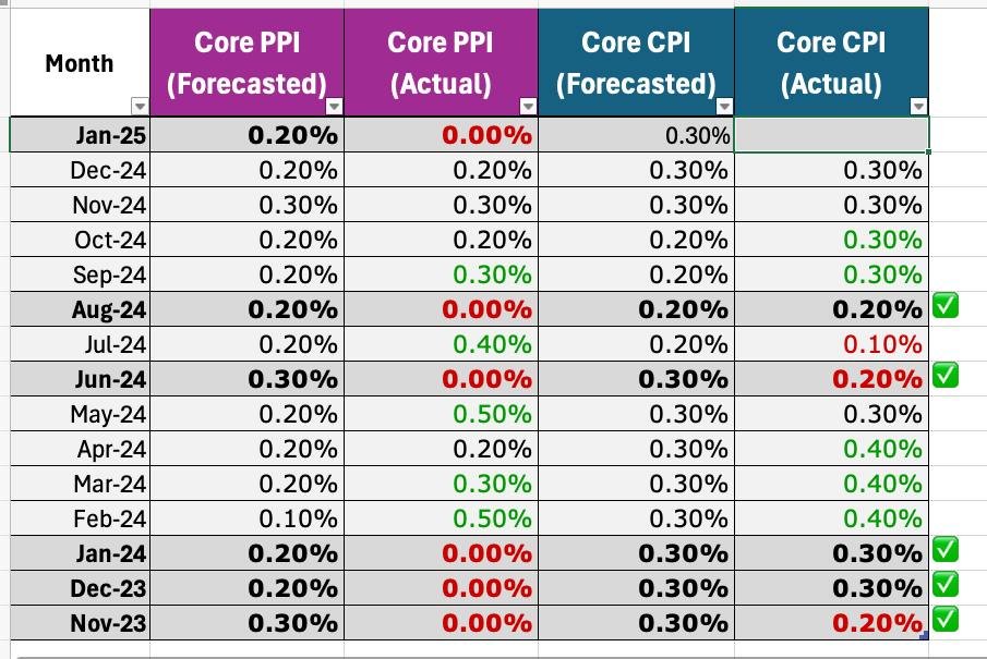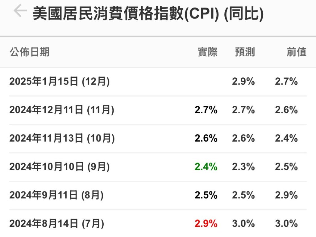 大家好,今天是2025年1月14日星期二。明天盘前,统计局将公布被交易员认定最关键数据的12月消费者物价通胀指数,其中市场预期CPI同比增长为2.9%,Core CPI为同比增长3.3%。自24年美联储首次降息以来,通胀开始出现反弹迹象,通胀数据同比从9月份的2.4%上涨到了11月的2.7%;其环比也从0.2%反弹到了0.3%。核心通胀的表现反而比较平淡,一直稳定在3.3%和0.3%。根据包含UBS、彭博社在内多家机构给出的报告,12月份通胀很可能再次火热。其中Anna Wong认为,12月份CPI同比年率将为3.0%,高于市场预期。