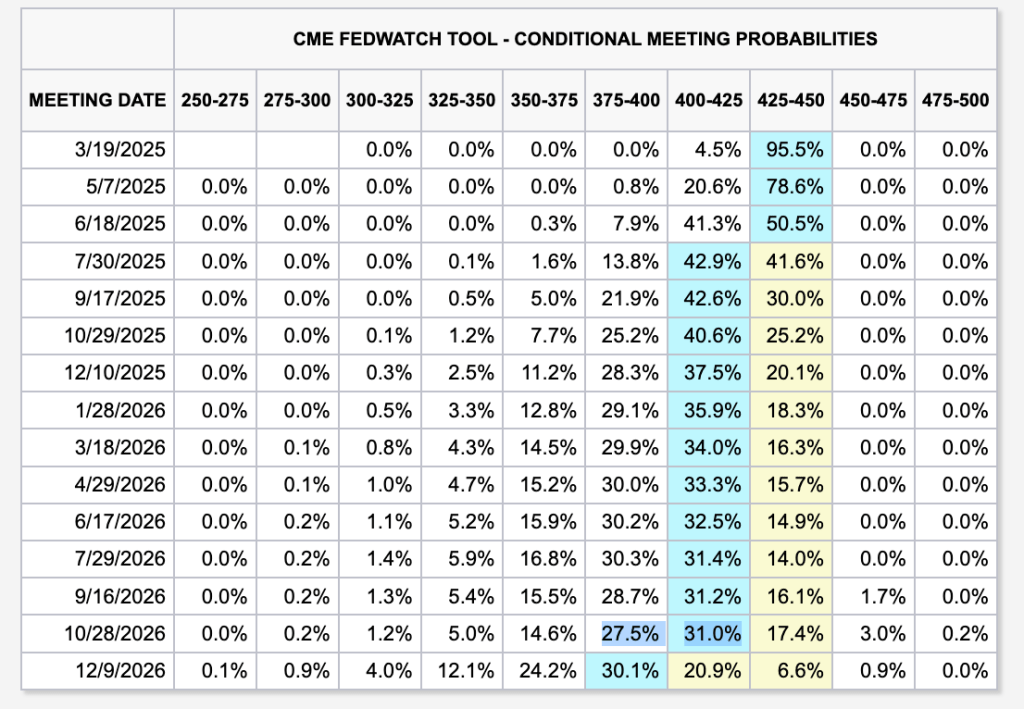 - 符合预期,概率65%,市场回归DOGE和贸易战的交易主线