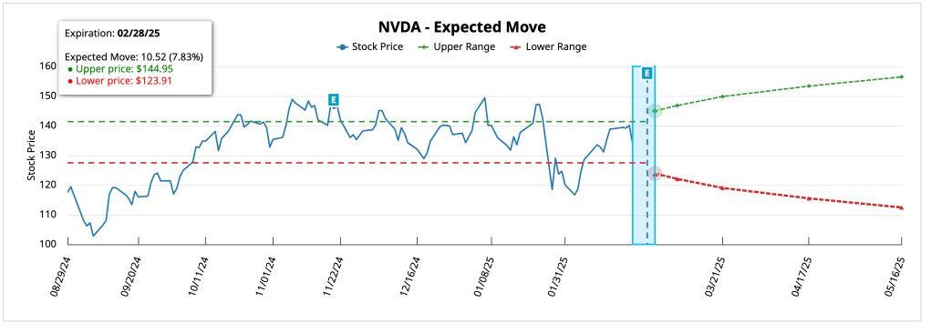 第二:从期权数据来看,财报后英伟达股价波动约为8%。由此可以推断出股价范围是123-144之间。