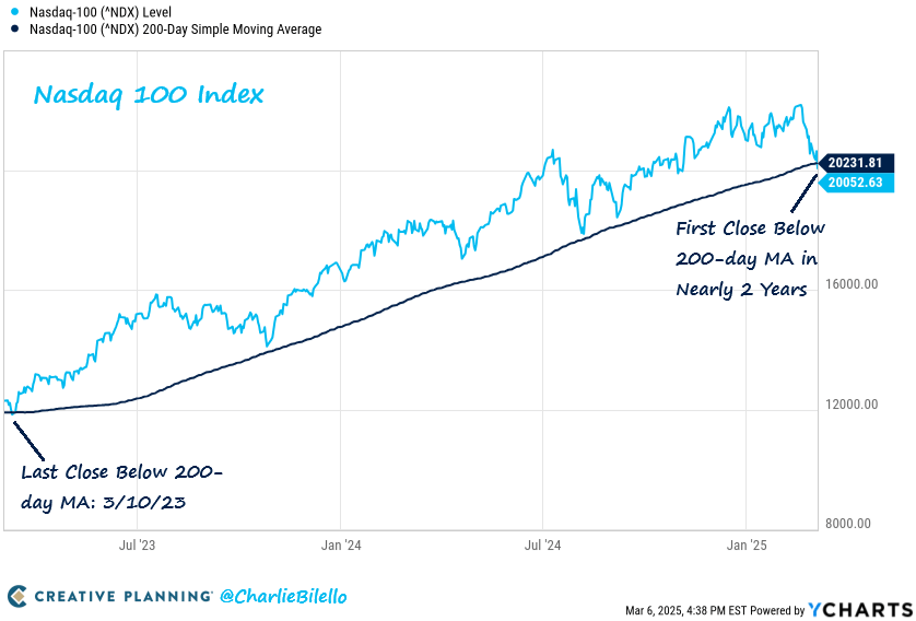 随着纳斯达克在周四创下Lower low,本周内的所有反弹尝试均告失败。从技术图形上看,自2023年10月来纳斯达克首次跌破200日均线,我们甚至可以宣布:这一波持续了497天的牛市已经结束。