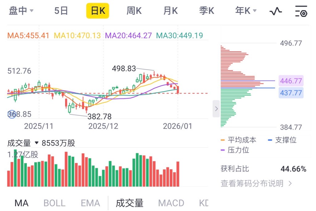 节后,TSLA 股价继续回落,最低跌破 450,基本吐回了 12 月初 FSD 炒作所带来的全部涨幅。