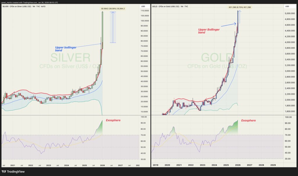 开年至今,除存储外,市场最引人注目的资产非大宗贵金属莫属了;而贵金属之中白银的走势尤为极端:三周左右时间涨幅接近 50%,周五突破 100 美元/盎司后,周一盘前期货继续跳空高开。市场流传一句笑话,比特币花了 13 年达到的市值,白银只花了一个月;当然,这更多是一种情绪表达,但它反映的,是白银在当前阶段被“现货逼空”供需失衡,价格极速飞涨的现实——虽然我们都知道,这种90度上涨的结局大概会是什么。