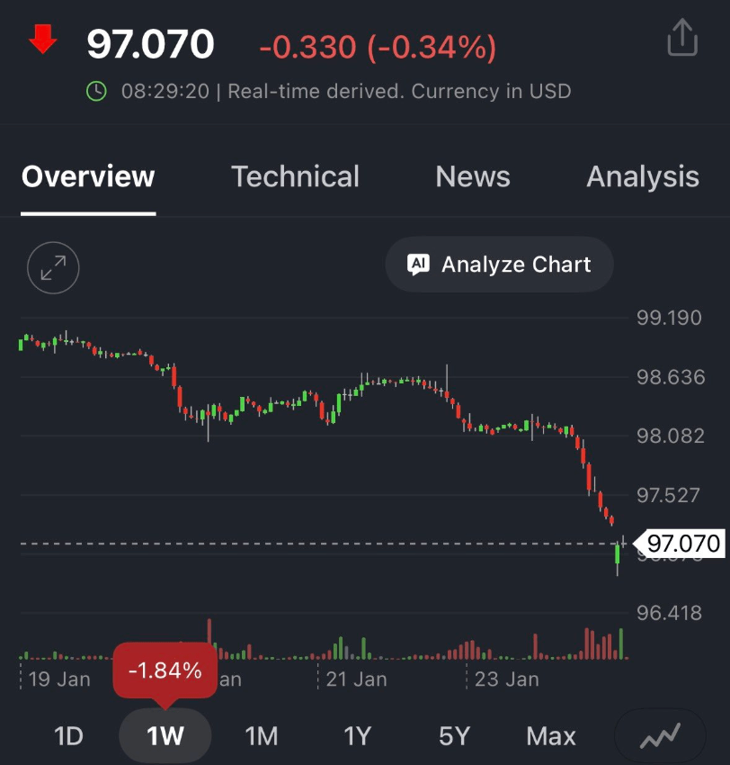 第二,美元贬值和宏观环境。自 2025 年初以来,美元指数从 107 走弱至跌破 100,当前位于 97 附近,背后反映的是美联储降息后,市场对美国政府财政纪律的不信任;同时,特朗普在伊朗、格陵兰岛等问题上的持续扰动,进一步影响世界对美元的信心。以美元计价的大宗商品价格蕴含了“避险”和“大水漫灌”一短一长两种趋势,看起来很难在短期内掉头。